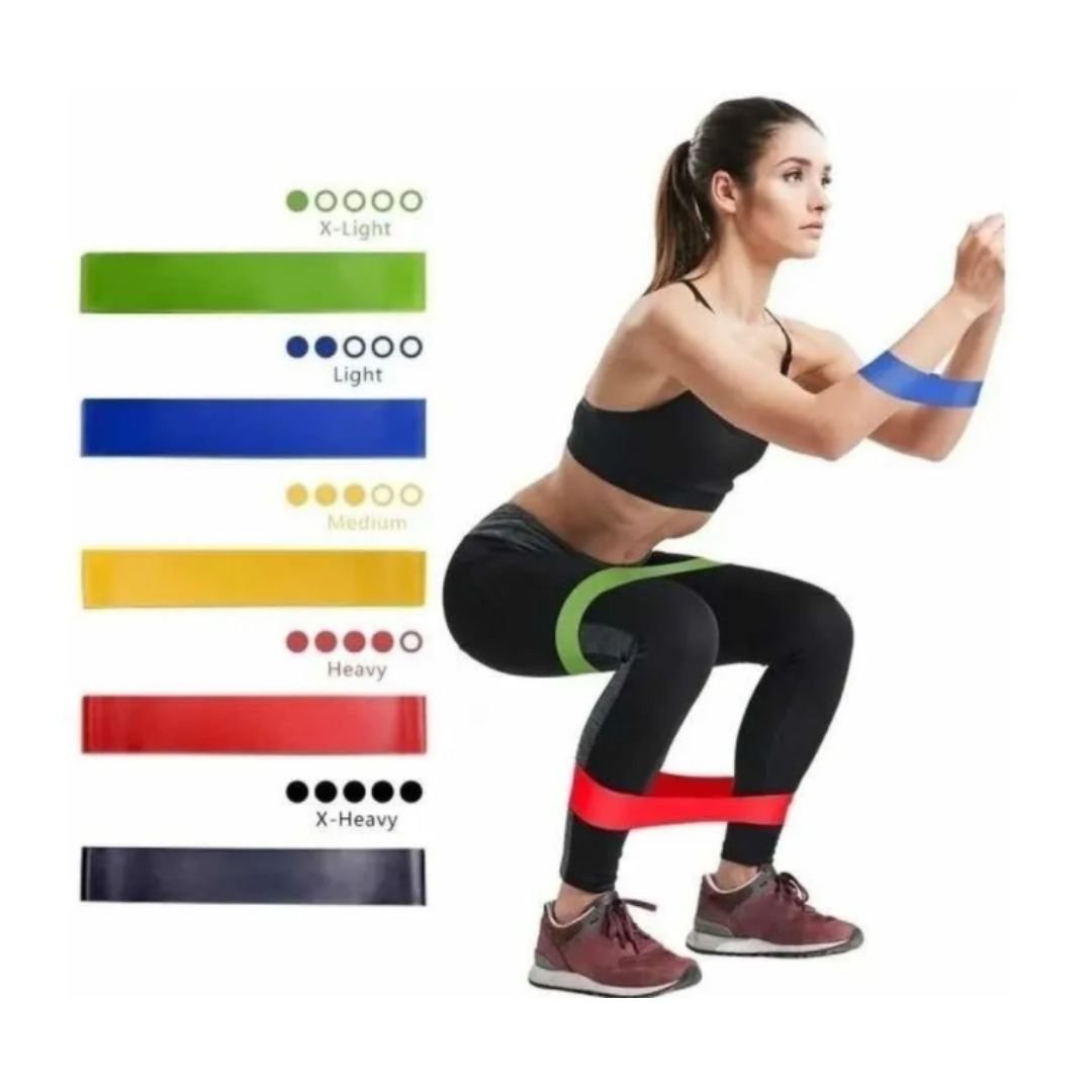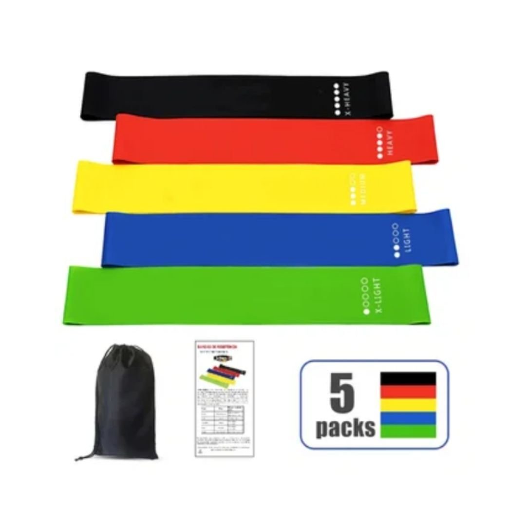 Kit 5 piezas de Bandas elásticas Seguras y duraderas. Hechas de látex 100% natural, no tóxicas y sin olor, y también elásticas y duraderas.