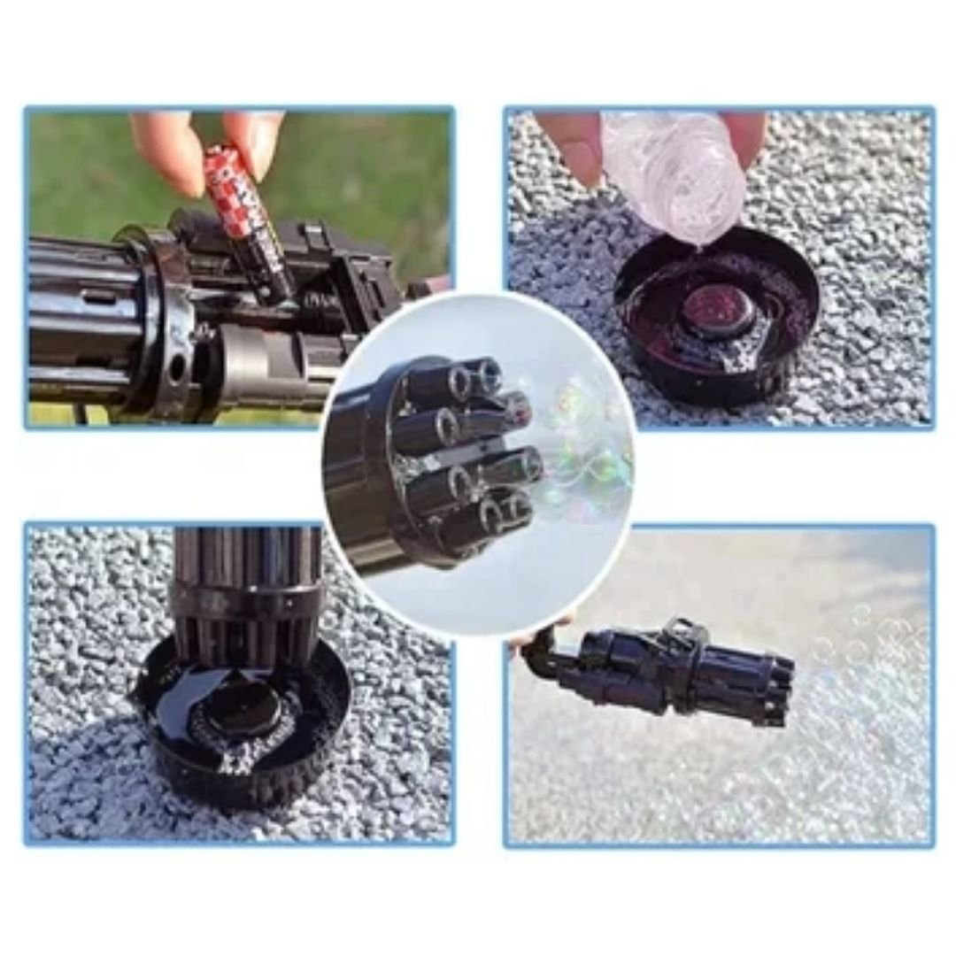 La pistola Gatling tiene un diseño interesante y de aspecto único, que ayuda a promover el desarrollo de la imaginación y la creatividad de los niños, y se puede utilizar como un regalo de cumpleaños para niños. Adecuado para varias ocasiones de fiesta, como carnavales, fiestas de cumpleaños, baby showers, viajes de camping, Halloween, bodas, playas, fiesta de burbujas en el patio, etc.
