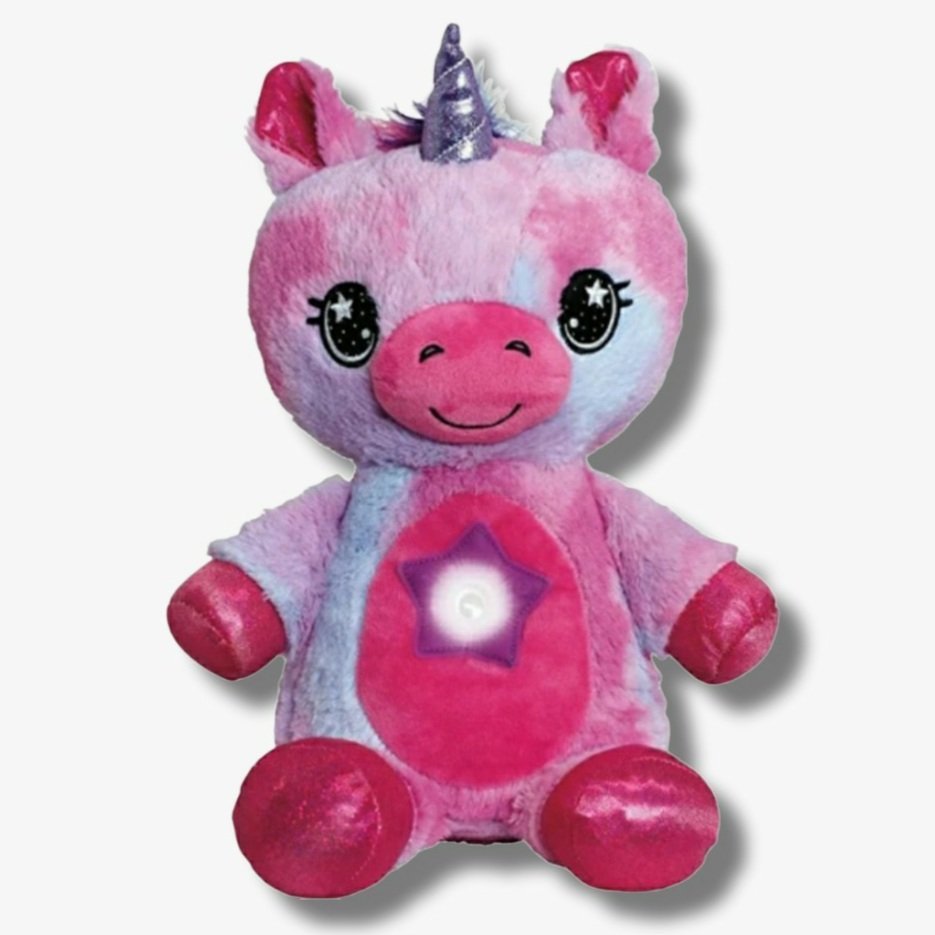 Cada Star Belly tiene su propio patrón de luces y a tus pequeños les encantará presionar el botón para escoger entre sus seis colores: morado, rosa, azul, celeste, verde y ámbar o, si lo prefieren, multicolor. Y cuando se queden dormidos, su Star Belly se apagará automáticamente a los 20 minutos.
