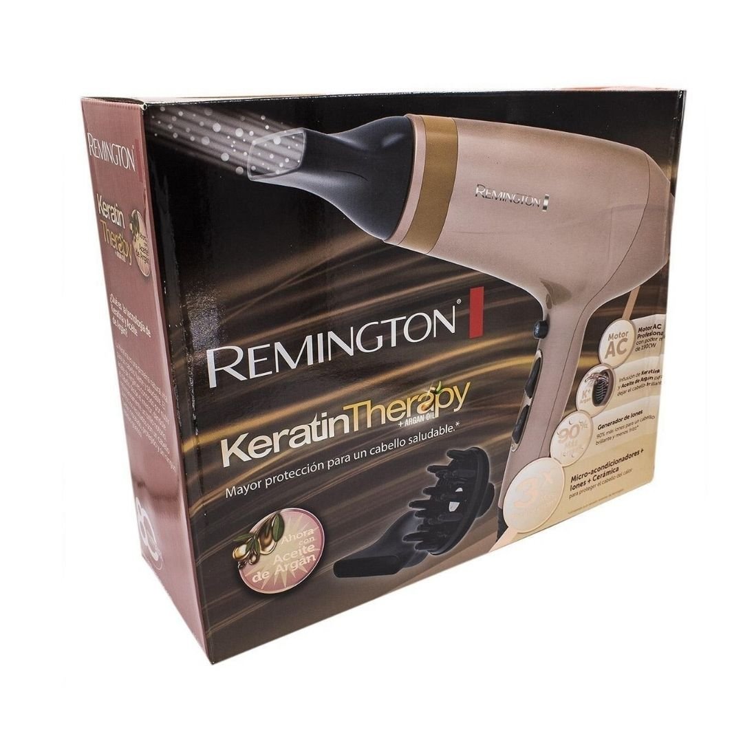 Secador de Cabello Profesional Remington Keratin Therapy Aceite de Argan ¿Te imaginas un secador que puedas utilizar todos los días y que no dañe tu pelo debido a la aplicación del calor? Te estarás preguntando si realmente existe algo así…Pues sí, lo tienes delante: el secador de pelo Remington AC8820 que protegerá tu cabello al máximo de forma mágica… ¿Quieres saber cómo? ¿Sigue leyendo!